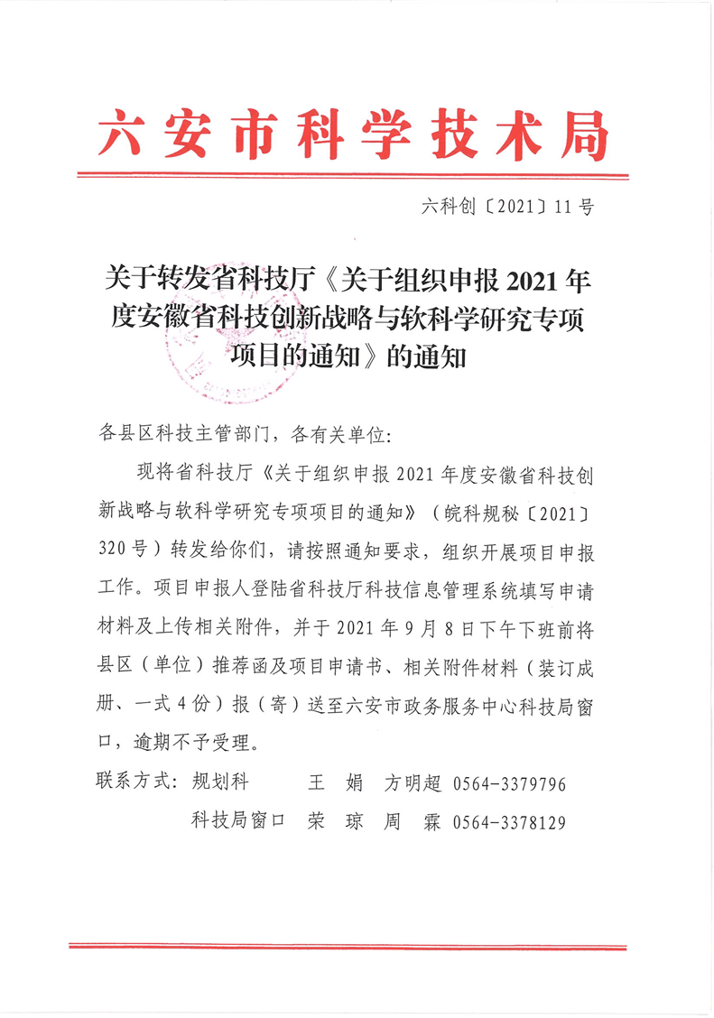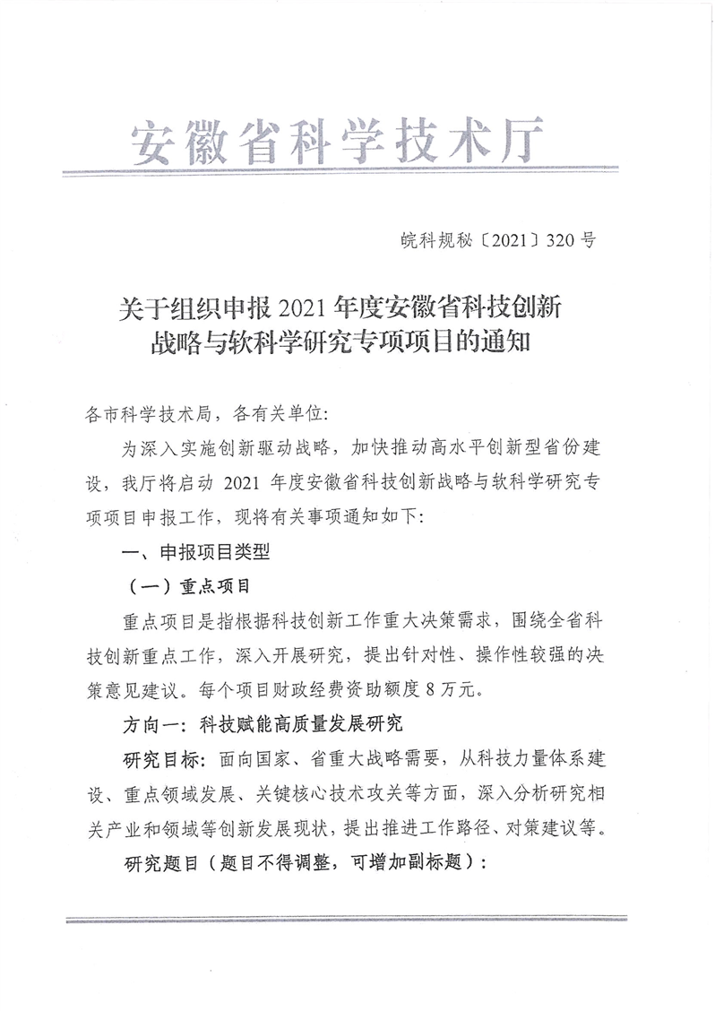 | 發(fā)布時(shí)間 | 2021-08-26 | 發(fā)文單位 | 安徽省科學(xué)技術(shù)廳 | |